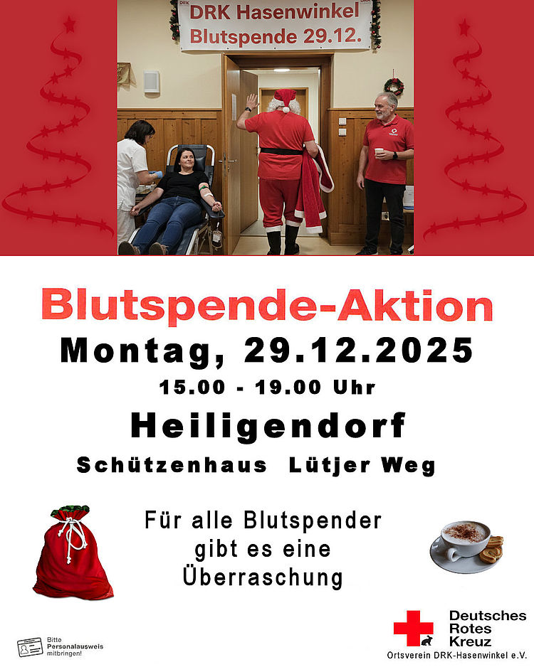 Gleich nach Weihnachten bitten wir Euch zur nächsten Blutspende in Heiligendorf.